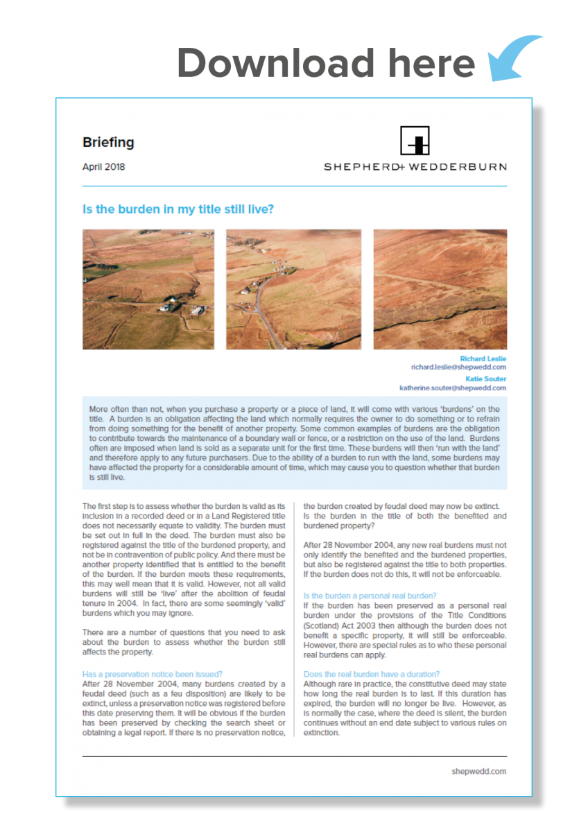 There are a number of questions that you need to ask about a burden to assess whether it still affects the property - has a preservation notice been issued? Does the real burden have a duration? Does the ‘Sunset Rule’ apply?